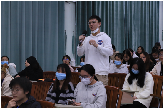 在互动环节,同学们向张耀辉教授提出“如何一步步进入校赛、市赛、省赛、国赛”等问题。张耀辉教授耐心地进行了答复,他建议同学们多查找国内外文献资料、多积累见习经验、多请教资历丰富者,并表示愿意与同学们一起共同探讨问题并解决问题。