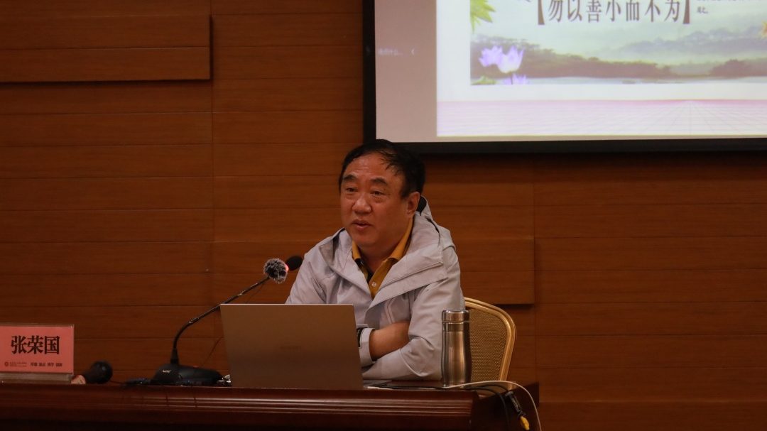 马克思主义学院院长张荣国教授以《高等学校教师职业道德修养》这一主题,向新入职教师展开专题培训第一讲。