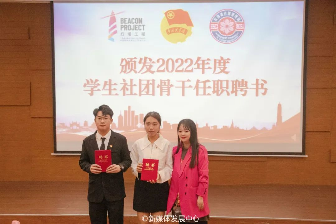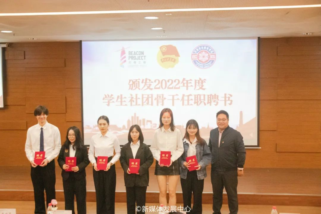 大会在激昂的团歌声中拉开序幕。随后,现场师生观看2022年度新伟德国际1946学生社团总结视频。一年来,我们31个不同性质的学生社团在学校党委、行政及各职能部门的关怀与支持下,始终坚持党管学生社团的工作理念,听党话、跟当走,持续深化改革,广泛开展阳光健康、积极向上的社团活动,在国家级、省市级各类比赛、活动中取得多项荣誉成果,充分展现我们学生社团青春风采,涌现一批华商特色的品牌社团,形成“一社一品”的良好局面。