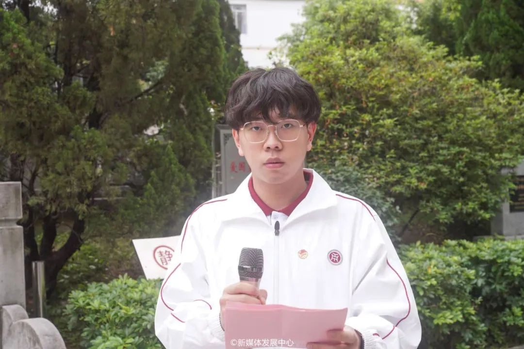 学生代表史梓健发言。他表示,斯人虽逝,精神永存,革命先烈的无畏精神将激励着我们前行。我们要铭记烈士们的遗愿,永志不忘他们为之流血牺牲的伟大理想,要把对革命先烈的悼念化为爱国爱党的浓厚情感。传承先烈遗志,弘扬先烈精神,在学思践悟中砥砺思想、磨练本领,以更加昂扬的精神状态和奋斗姿态肩负起青年一代的使命和责任,为全面建设社会主义现代化国家、全面推进中华民族伟大复兴而团结奋斗。