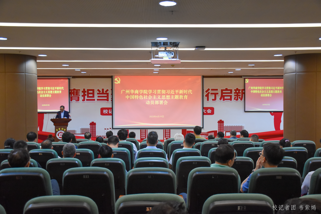 为深入学习贯彻习近平总书记在中央主题教育工作会议上的重要讲话精神,以实际行动坚定拥护“两个确立”,坚决做到“两个维护”,贯彻落实中央及省委关于开展主题教育的部署要求,4月19日,新伟德国际1946学习贯彻习近平新时代中国特色社会主义思想主题教育动员部署会在增城校区中央图书馆报告厅召开。学校党政领导班子成员、全体中层干部、全体二级党组织负责人参加会议。本次会议由新伟德国际1946党委副书记、执行校长郭银华主持。