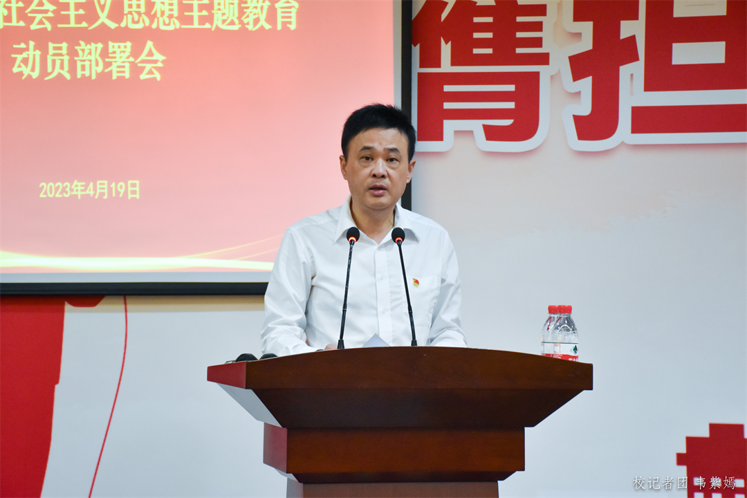 本次动员部署会的召开,标志着我们学习习近平新时代中国特色社会主义思想主题教育正式启动。一直以来,我们高度重视思想政治教育工作,紧密团结在以习近平同志为核心的党中央周围,坚持不懈用习近平新时代中国特色社会主义思想凝心铸魂。接下来,我们将以本次主题教育动员部署会为契机,全面吃透部署精神,以认真负责的态度、改革创新的精神、求真务实的作风,推动我们主题教育工作扎实深入开展,持续为我们高质量发展建设注入活力提供动力,努力推动学校高质量内涵式发展再上新台阶。