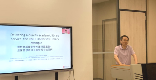2023年4月20日,我们邀请EIA特聘教师Deb Wright为图书馆全体员工做题为“提供高质量的学术图书馆服务:以皇家墨尔本理工大学图书馆为例”的讲座,图书馆温万虎馆长、国际交流与合作处王文忠处长及图书馆全体员工出席。图书馆馆长温万虎主持讲座并介绍主讲人。