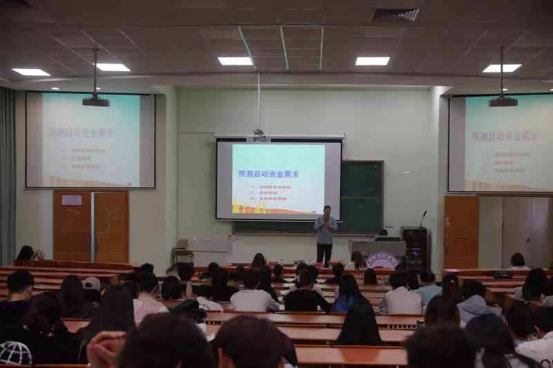 讲座伊始,郑朝亮老师以预测启动资金的概率为切入点,从启动资金类型、投资预测、启动资金预测三个方向为同学们介绍了在创业初期所需要准备的财务工作,详细地给同学们讲解了如何写好一份优秀的创业计划书。