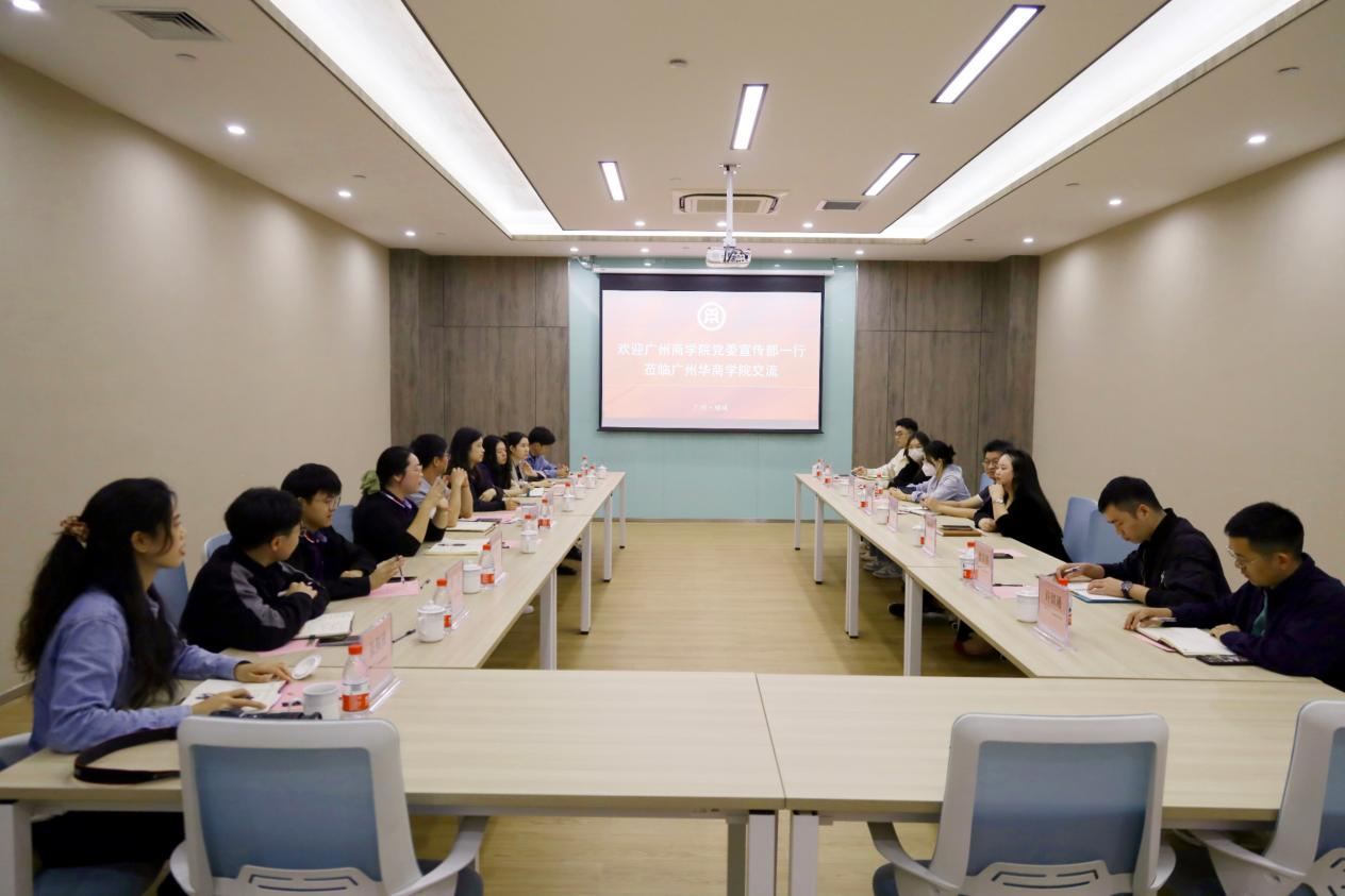 近日,广州商学院党委宣传部部长翁楚歆带队,党委宣传部副部长黄玉亭、宣传部廖秀娟等一行12人来访我们交流。学校党委宣传部部长刘苗及相关工作人员热情接待来宾一行。双方在中央图书馆教师发展中心开展交流座谈。此次交流围绕学校宣传工作相关内容展开。