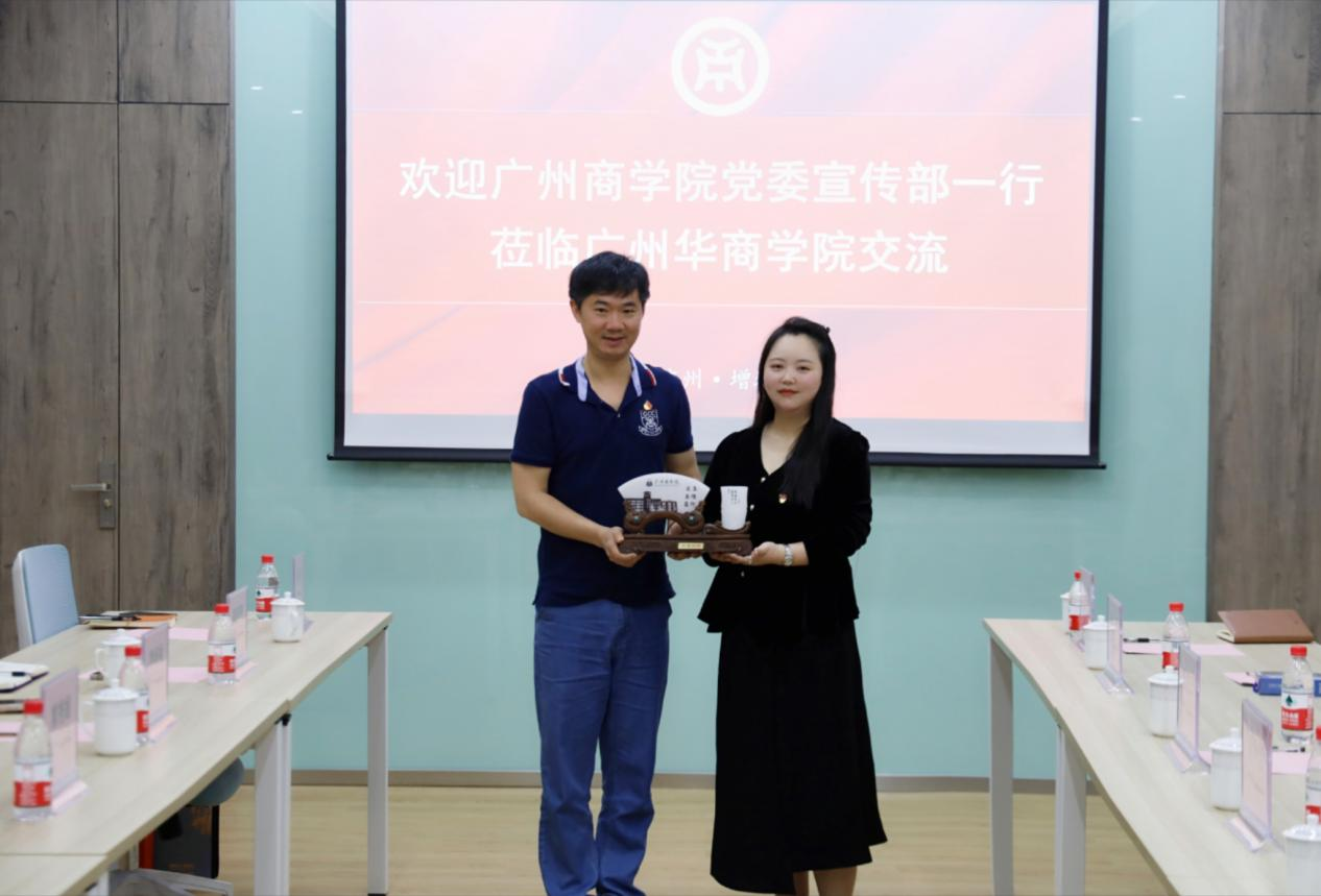 会后,广州商学院党委宣传部向我们党委宣传部送上精美的纪念品。