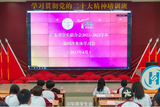 广东学联学生会2022-2023学年第四次集体学习会于2023年4月27日19:00通过视频会议方式召开。为深入贯彻党的二十大精神,深入开展学习贯彻习近平新时代中国特色社会主义思想主题教育,进一步深化新时代学联学生会改革和建设,我们团委组织动员校院两级学生会主席团成员及工作人员在励志楼c408进行同步学习。