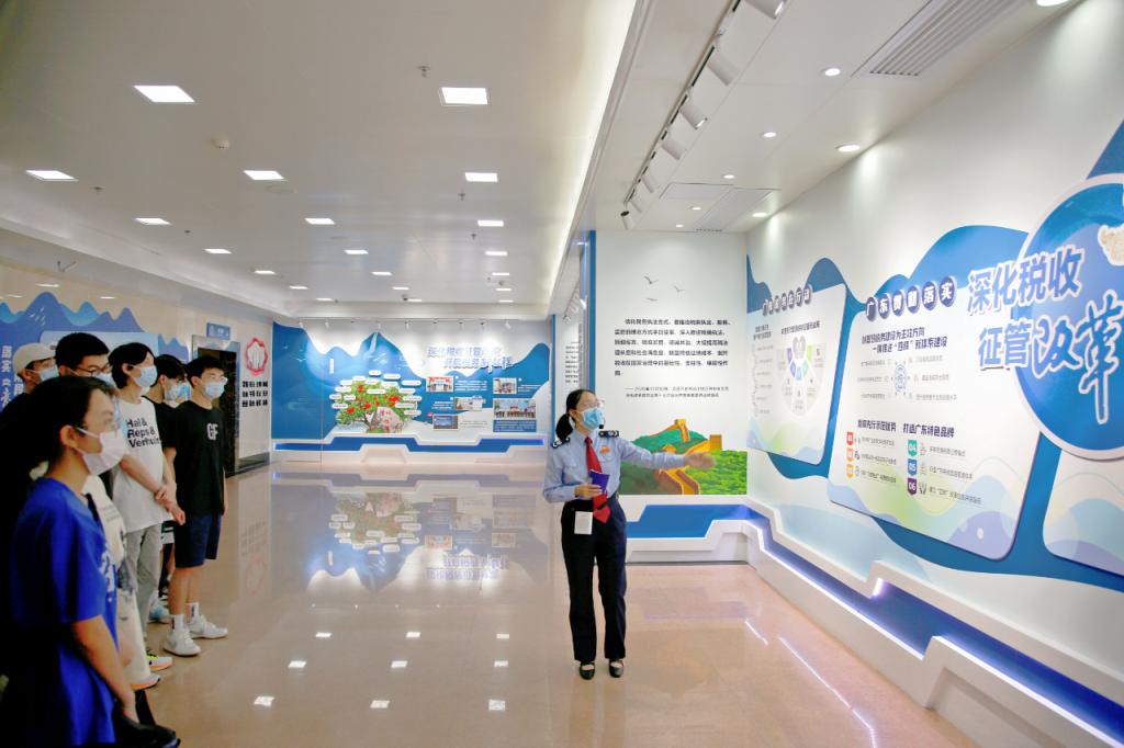 以史为鉴,可以知兴替。同学们首先来到区税务局党建文化展厅,区税务局青年干部向同学们介绍了“党旗引航 凝心聚魂”“砥砺前行 善作善成”“基层先锋 战斗堡垒”“倾情带队 带好队伍”等篇章内容,让同学们直观看到税务工作人员以党建为引领,深入小区、学校、企业等开展税收政策宣传、举行各项税收活动,使同学们进一步加深了对党史和税务部门党建活动的了解。随后参观了深化税收征管改革展厅,了解到在落实两办《意见》、深化税收征管改革中增城区税务局适应地方特色制定“1+2+13+N”的税费服务模式、与地方政府部门建立涉税信息共享机制、完善适应营商环境的税收征管体系,能更便捷高效地为纳税人提供税费服务。