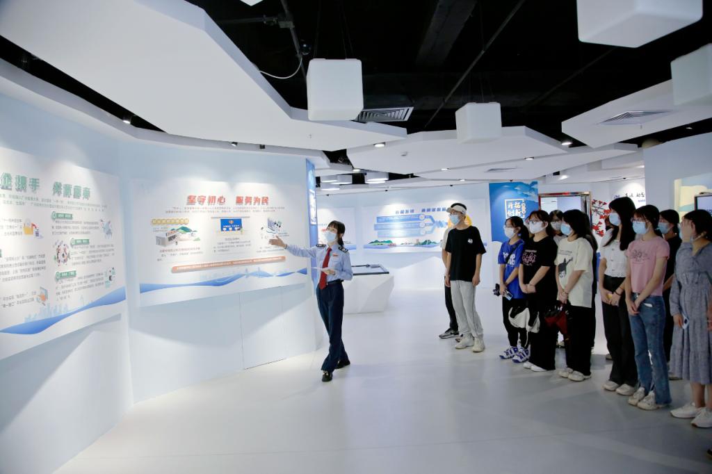 在参观学习区税务局云税厅中,税务人员具体讲解了“聚力赋能 服务新格局”“智税云办 益企向未来”等主题板块内容,同学们观看了税收宣传短片,参观了云税厅办公区,了解到依托“广州智慧12366”智能咨询平台,为纳税人提供全税费种及电子办税操作智能咨询服务,实现“7×24小时服务不打烊”。纳税人也可通过粤税通、政务“晓屋”等渠道进行实时线上办税,也可以在V-Tax远程可视化办税平台与税务人员远程“非接触式”办理税费业务。