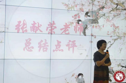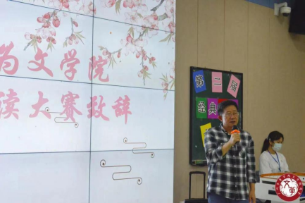 张献荣老师就这次大赛做了点评。张献荣老师用异彩纷呈和多姿多彩两个词语来概括比赛情况,表示本次比赛无论是内容还是形式都是丰富多彩的,有声、有色、有情怀。她指出,此次红色经典作品诵读活动主题鲜明、内容丰富、亮点纷呈,参赛选手结合自身人文专业知识,创新了比赛形式,展现了百年党史的辉煌壮阔。张老师还从专业的层面指出了选手们的优缺点,鼓励同学们练好口才。
