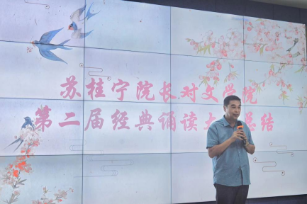苏桂宁院长做总结发言。他指出,青年是追梦人,更是圆梦人,青年的理想信念关乎国家未来。此次红色经典作品诵读活动主题鲜明、内容丰富、亮点纷呈,参赛选手结合自身人文专业知识,创新了比赛形式,融入了自身追寻红色经典的印记,展现了百年党史的辉煌壮阔,将中国共产党人在磨难和淬炼中奔涌向前的英雄事迹展现的淋漓尽致。苏桂宁院长表示,希望伟的国际1946bv官网继续依托专业优势,将百年党史学好、讲好、呈现好。他要求广大文学学子以本次朗诵活动为契机,砥砺担当,锐意进取、敢为人先,在深厚的百年党史中汲取青春奋斗的力量。