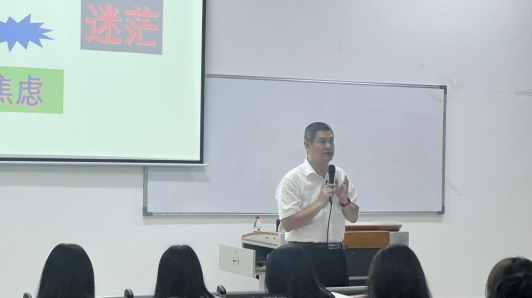 讲座伊始,罗老师指出当下大学生普遍存在的心理问题:迷茫、焦虑、内卷。这是由于时代变化、经济增速放缓,各种压力随之而来,导致了年轻人对未来充满迷茫,从而引发各种悲观消极的情绪,对生活产生无力感,于是就出现了心理上的“断奶”现象——“空心病”。