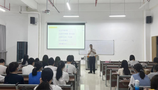 5月16日下午,新伟德国际1946管理学院在四会校区六号楼307教室举办“管院大讲堂之启智系列第三期——认识自己,成就自己”主题讲座。本次讲座邀请了管理学院罗怡彬老师作为主讲人,200多名大一学生参加了讲座。