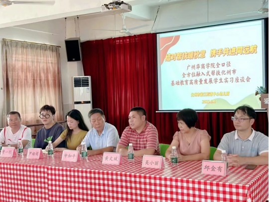 9月4日中午,教院学子在申和平教授、尹娅娟老师和曹一彤老师的带队下,平安抵达化州市。并于当天下午,在化州市鉴江街道中心幼儿园召开了新伟德国际1946全口径全方位融入式帮扶化州市基础教育高质量发展学生实习座谈会。化州市教育局领导、平定镇中心幼儿园尤福南园长、化州市鉴江街道中心幼儿园吴小丽园长、教师教育学院带队老师以及各位实习生们出席了本次座谈会。