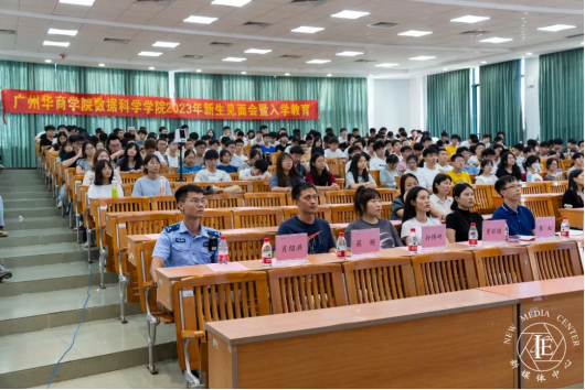 广东省信息安全测评中心研究员曾祥斌、李虹,增城区雁塔派出所副所长刘齐心、增城区雁塔派出所郭伟彬、梁灿锋,正佳集团朱民杰、丁军防、孙博研、曾颖瑜,党委保卫处处长杨燕平、党委保卫处梁艳,以及学院全体辅导员和全体新生参加活动。活动由2023级年级副主任耿艳利主持。