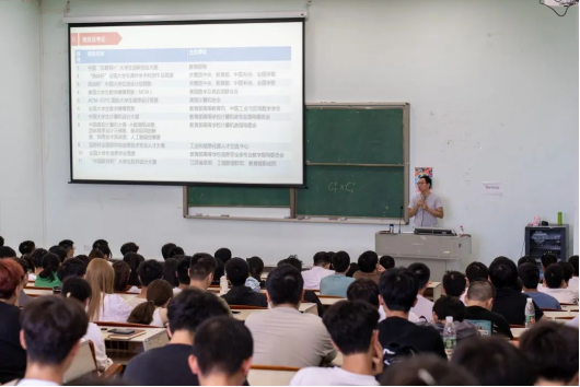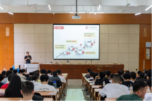 黄主任从学校概况、数据科学1946伟德概况、计算机科学与技术专业概况、课程设置、就业形势等方面进行介绍,详细介绍了计算机科学与技术专业的人才培养方案,课程建设情况,实践教学的条件,学科竞赛,考取证书,以及课程体系等方面的信息,通过思维导图重点介绍了所有课程的先修与后修的关系,勉励同学们强化自身学科知识,深入打磨专业技术,激励同学们树立远大的理想,确定学习目标,制定适合自己的学习计划,努力学习。