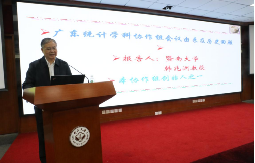 本次会议由广东统计学科协作组创始人之一——中山大学岭南学院夏南新教授牵头发起、主持并致开幕辞。夏教授希望能够通过此次会议,用表格丈量社会经济,用数字来辅助政府决策。我们大数据研究院韩兆洲院长(原暨南大学)也作为广东统计学科协作组创始人之一,发表了讲话,主要谈了广东统计学科协助组会议由来及历史回顾。广东省统计局局长杨新洪、广州市统计局局长陈小华、佛山市统计局局长王慧艳以及深圳市统计局副局长沈宜等应邀出席,分别作了“统会融通”——广州市探索统计数据采集方式创新的路径与思考、新经济下消费统计面临的挑战和如何破局的思考、深圳零工经济统计核算的探索与实践的报告。作为本协作组创始人之一的广东财经大学林洪教授也作了报告“百年未有之大变局下的国民经济核算变革创新”。