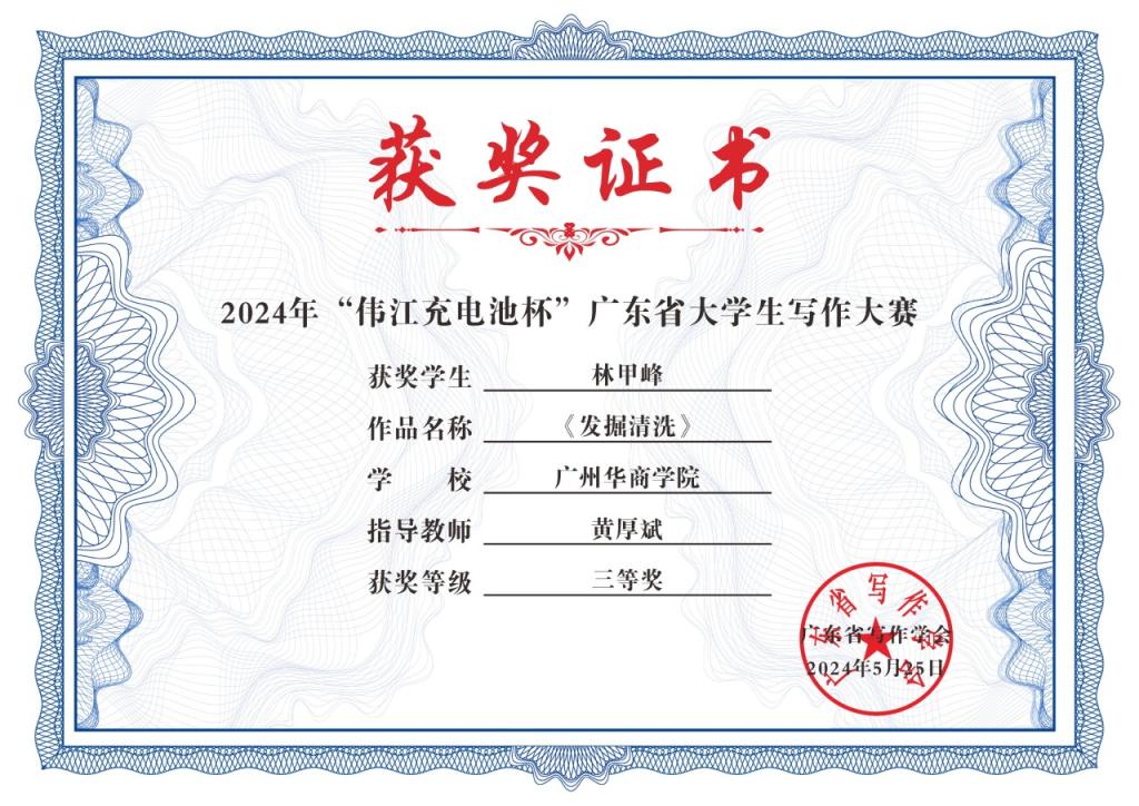 在我们学子对文学创作的长期坚持和各位指导老师的潜心研究、耐心教学下,我们也在本次大赛中取得优异成果,被授予“优秀组织单位”称号,荣获“广东省写作学会教学成果奖”二等奖。