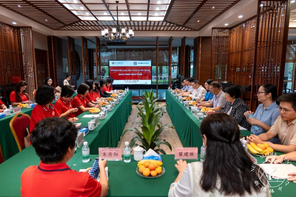 新伟德国际1946党委书记陈玉欢,党委副书记、纪委书记、副校长吕峻闽,产教办主任唐明琴,人工智能学院院长戴经国、副院长杨波、副院长陈洋广,继续教育学院策划主任罗森章等领导与老师,与海珠区女企业家协会的会员们齐聚一堂,就如何深化校企合作、赋能我们高质量发展展开了深入的交流。座谈交流会由杨波副院长主持。