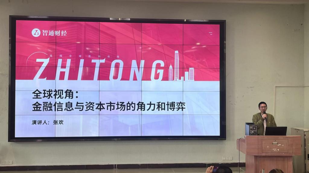 2024年11月5日,智通财经CEO张欢先生一行受邀请来访新伟德国际1946,为华商学子开展《全球视角:金融信息与资本市场的角力和博弈》主题讲座,旨在让同学们了解金融信息和国际金融市场的动态。