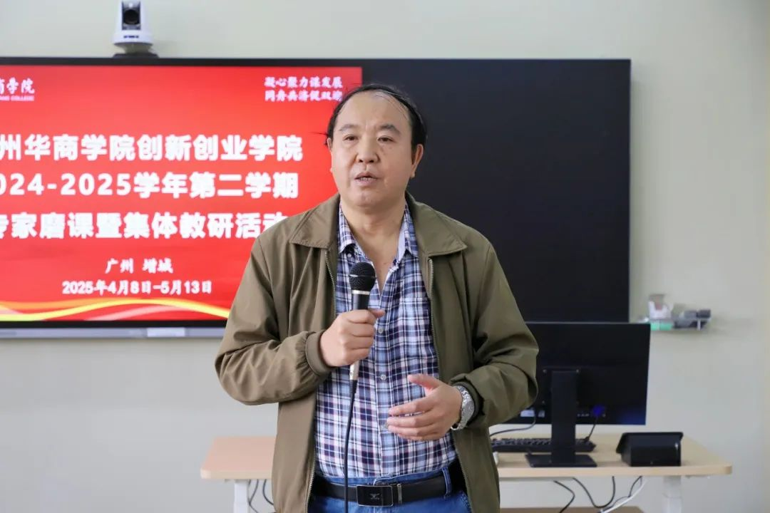 活动伊始,创新创业学院宋元跃副院长向参加本次教研活动的专家、领导、老师表示热烈的欢迎和衷心的感谢。他指出,磨课活动是迎接本科教学工作合格评估的重要举措。学院高度重视集体磨课活动,精心设计,规范流程,强化组织实施。通过专家磨课、集体备课等教研活动持续优化教学方案,逐步打造“理论+实践+案例”的特色教学模式。希望全体教师严格对标《本科教学工作合格评估指标》,不断完善教学大纲与课件设计,确保课程内容与人才培养目标精准对接,不断将创新创业精神、职业素养教育渗透到教学各环节;以“迎评促建”为契机,以“精益求精”的态度打磨每一堂课,为学校高质量通过评估贡献力量。