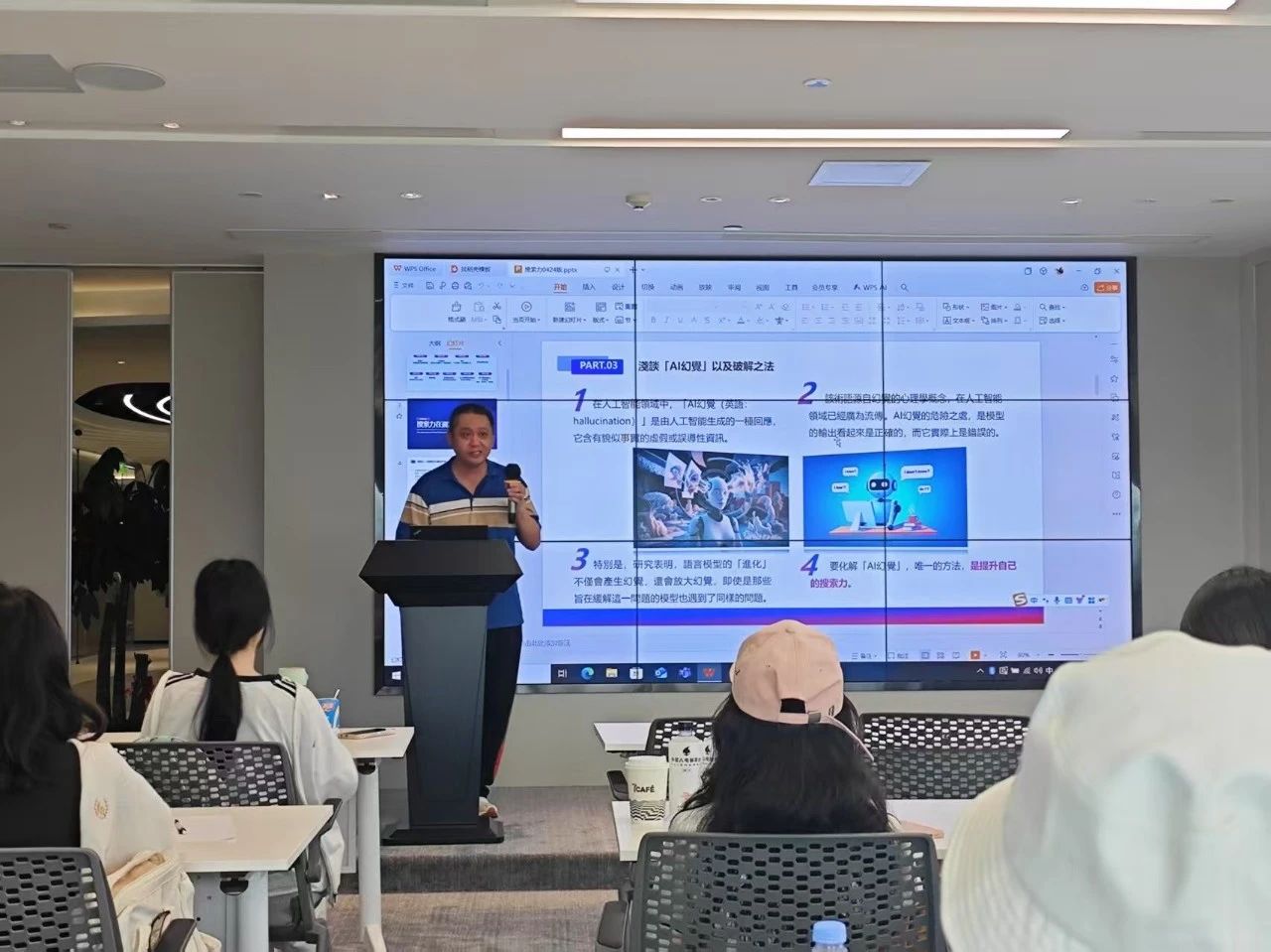 (聚客集团AI指令师洪庭燊为同学们讲解如何高效率的使用AI)