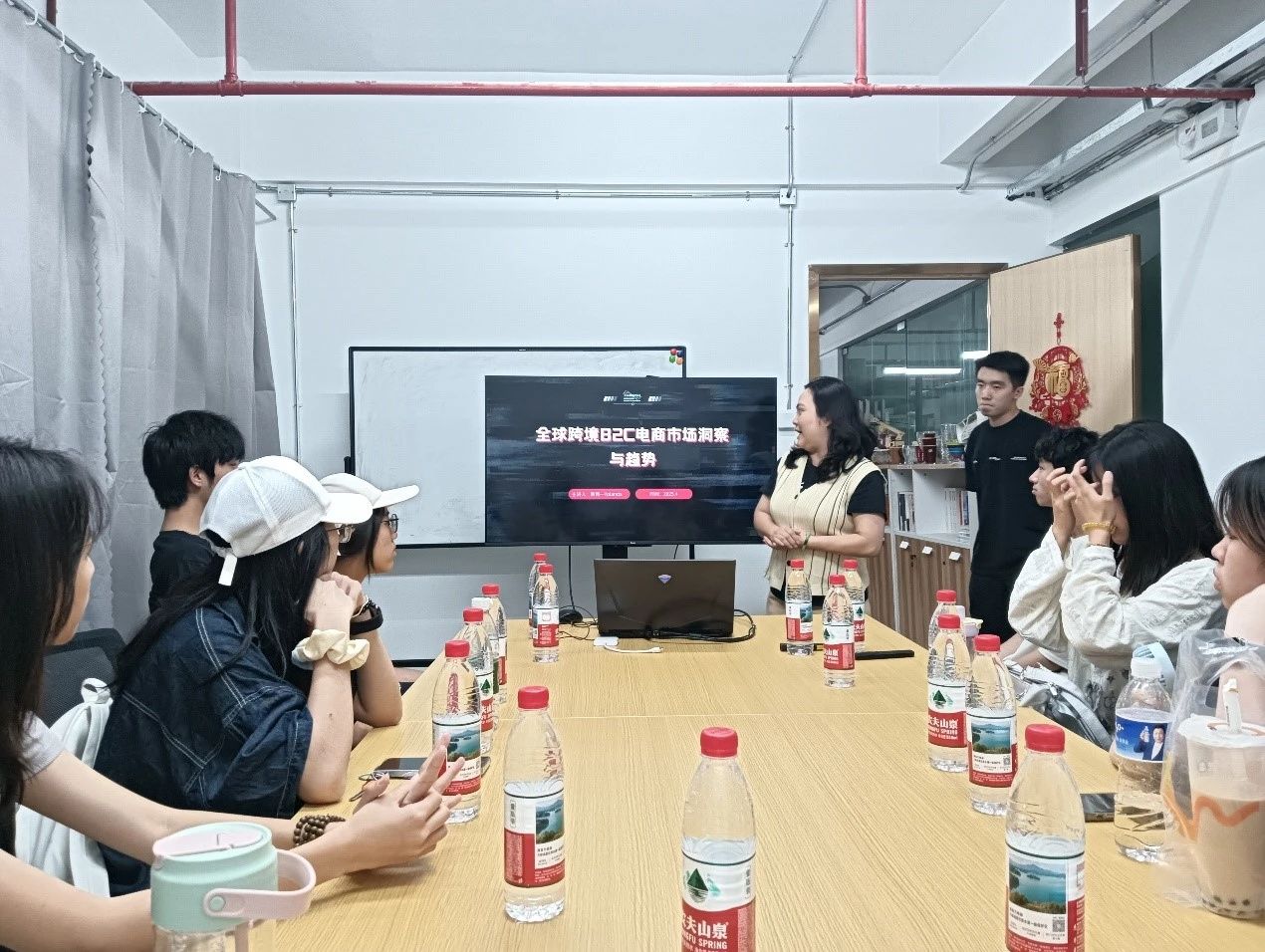 (在跨境电商宜映传媒,陈蓉妍总裁为同学们讲解AI在跨境电商中的作用)