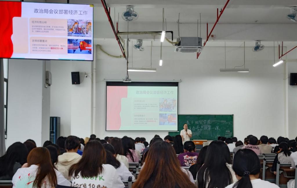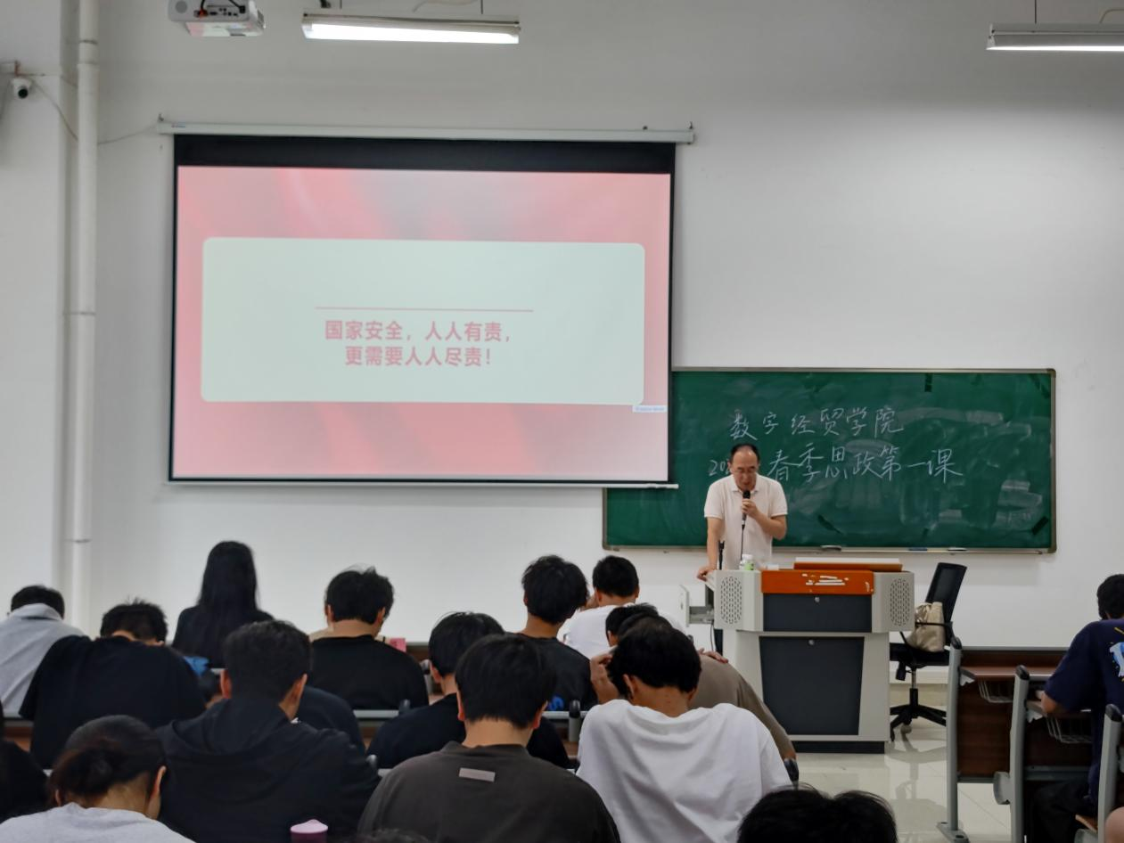 国家安全是安邦定国的重要基石,维护国家安全是全国各族人民根本利益所在。国家安全是民族复兴的根本保障,学习国家安全知识对学生的成长至关重要。为增进广大青年学生对国家安全的深度认识,树立正确的价值观,2025年4月27日下午,数字经贸学院党委书记李伟在肇庆校区6号楼205教室为数字经贸学院肇庆校区学生开展2025年春季学期思政第一课。