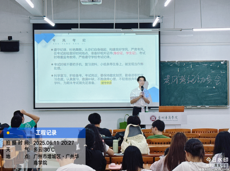 6月16日,数字金融学院在肇庆校区召开主题班会。会议由数字金融学院团委副书记赵颖祯老师主持。赵老师以“考风即学风,考纪即品德”为切入点,通过案例学习、警示教育,重点强调证件核查、违规处理等细节要求。她特别提醒,考试不仅是知识的较量,更是品格的考验,每一份答卷都应写满真诚。