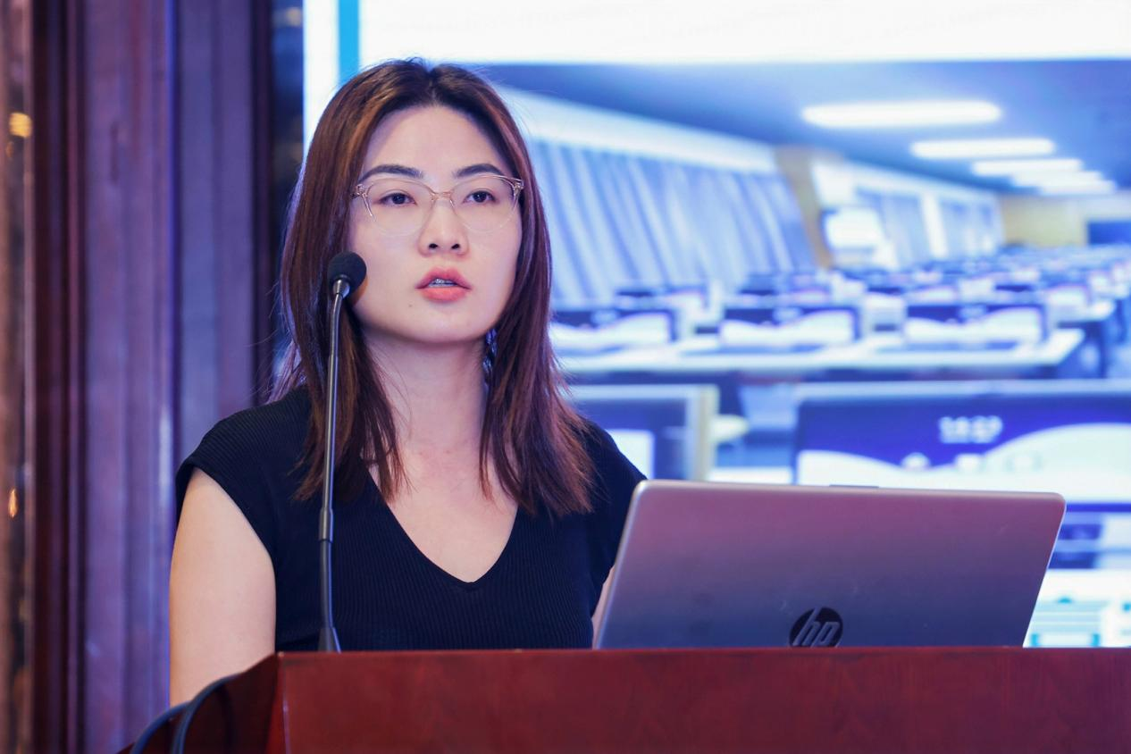 (张嵛老师作题为“AI Agent在跨境电商产教融合的应用探索”的专题发言)