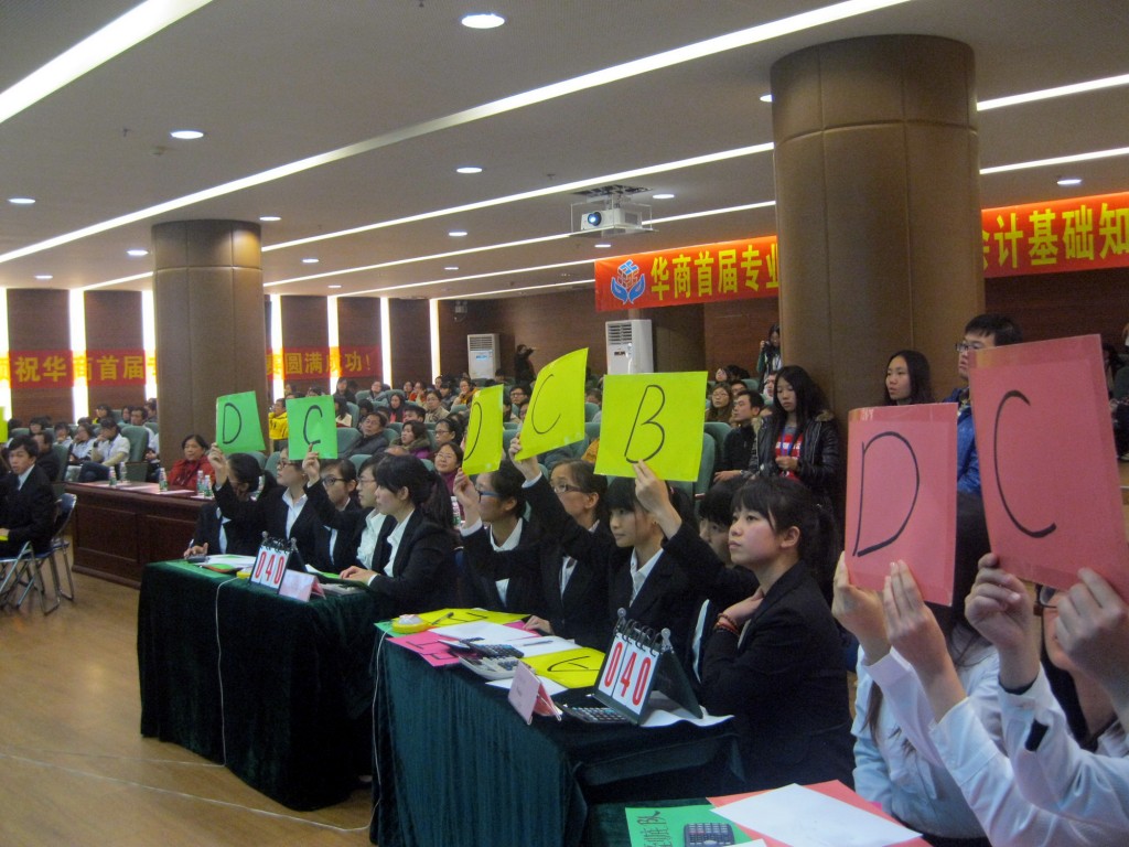 为了强化学生专业知识的综合运用,培养会计应用型人才,丰富会计系学生的课程生活,经过紧张的筹备和激烈的初赛、复赛阶段,会计基础知识竞赛决赛于2013年12月17日下午3点在我们图书馆学术报告厅隆重举行。华商学院院长陈玉川教授、教务处处长郭银华教授、副处长方琦、会计系主任马玉珍教授、副主任柳学坤教授、副主任许娜以及会计系各教研室老师和全体辅导员莅临了本次决赛。袁明全教授、陈东升教授、刘彩兰老师和杨勇老师担任了本次决赛的评委嘉宾。