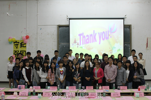 2013年10月28日19点整,公共管理系“扬守纪之教,成强国之梦”团组织生活在励志楼B208举行。公共管理系团学委员会书记张函梅老师、党支部副书记彭海波、各系团学委员会副书记、各团支部代表以及公共管理系13级全体团员参加了这次活动。