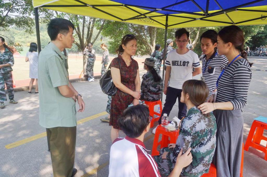 在途经新生训练营中,恰巧看到有新生身体不适被助班扶到大本营休息,各位老师立即上前询问新生身体状况,并协调了校车马上送她到人民医院就诊。对于新生军训期间的身体健康问题,我系领导和辅导员再三强调:要把学生的身体健康和安全放在首位,时刻关注军训期间新生的身体状况,让我系新生安全顺利地完成大学第一课——军训任务。