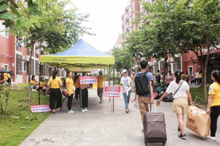 微笑是经济系的标志,奉献是经济系的精神。尽管在迎新工作中天公不作美,但老师们的身影随处可见,他们在现场指导工作,耐心地回答着新生、家长们提出的各种问题,为迎新工作的顺利开展保驾护航。