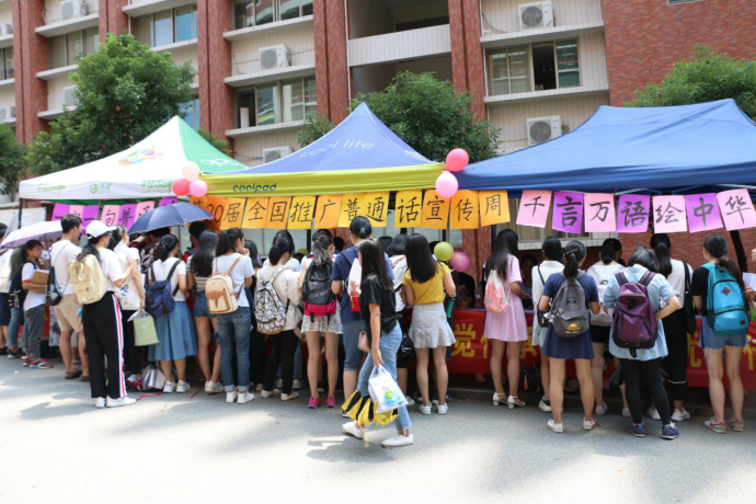 我国是多民族、多方言的国家。共同语的普及程度是国家和民族文明程度的一个重要标志。《中华人民共和国宪法》规定“国家推广全国通用的普通话”。经国务院第134次总理办公会议批准,自1998年起,每年9月份第三周在全国开展“推广普通话宣传周”活动。为响应国家“大力推广规范使用国家通用语言文字,自觉传承弘扬中华优秀传统文化”的推普主题,也为了令华商全体学生更加了解学好、讲好普通话的重要性,由广东财经大学华商学院主办,教务处和伟的国际1946bv官网文学系共同承办的“第二十届全国推广普通话宣传周活动”于2017年9月12日中午12点整在华商学院第三饭堂校道举行。