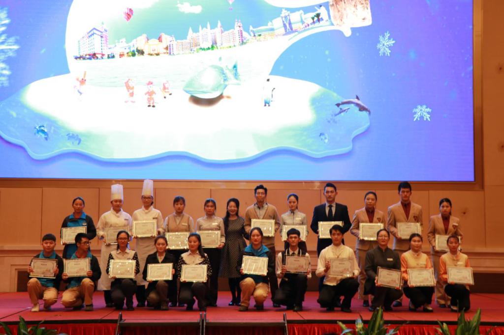 同学们的坚持充分展现了华商学子高度的责任感、虚心求学的态度,得到了珠海长隆集团的一致好评。其中,我们14级旅游管理专业林国玉、谢荣荣、刘欣仪等17名学生因工作积极,表现优秀,从长隆集团70多家合作院校众多实习生中脱颖而出,在2018年1月3日广东长隆集团有限公司2017年实习生分享总结表彰大会上被广东长隆集团有限公司授予2016-2017年“优秀实习生”称号,获奖人数占比为32.1%。此外,林国玉同学作为长隆集团2017年所有高校唯一的优秀实习生代表发言。