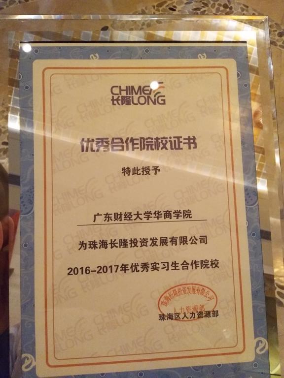 自2013年签订校企合作协议以来,我们和珠海长隆集团走过了5个年头的校企合作之路,双方相互支持、共谋发展,校企合作模式不断深化,取得实效,并在2017年被珠海长隆集团授予 “优秀合作院校”证书。