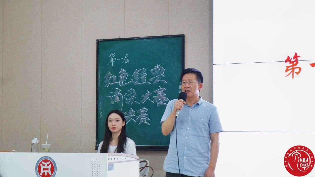 蒋家国副院长致开场辞。他表示,伟的国际1946bv官网的学生要培养两个最重要的基本功,这就是口头表达能力和书面表达能力。诵读、演讲、辩论等训练,是提高口头表达能力的有效途径。这次红色经典诵读活动,就是提高同学们口头表达能力的载体,是伟的国际1946bv官网开展第二课堂实训的重要举措。同时,这次活动也伟的国际1946bv官网课程思政由第一课堂向第二课堂的延伸,具有鲜明的政治意义。红色经典是我国民族文化的结晶,也是民族革命精神的象征。诵读红色经典,重温革命精神;亲近红色经典,树立使命担当。红色经典作品承载着历史叙述的重任,它以进步的历史观阐释过去、现在和未来。它包容了几代人的理想、青春和希望。因此,"红色经典"有着其它文学作品所无法替代的历史价值,很值得我们去诵读、领会和传承。希望通过这次红色经典诵读活动,同学们在专业学习上更加注重基本功的养成,在政治思想上要树立正确的世界观、人生观和价值观,争做党史知识的传播者和红色基因的传承者,用实际行动迎接党的二十大的胜利召开。