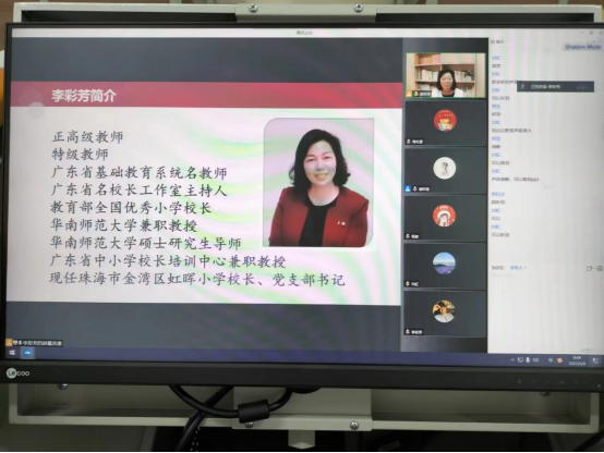 见习第一天,指导老师们组织全体学生聆听教育部全国优秀小学校长,广东省中小学名校长工作室主持人李彩芳校长的线上《看似寻常最奇崛 成如容易却艰辛》——给小学教育专业同学们的几点建议的讲座。李校长从教师的职业行为准则,小学教师的教学基本功和教育情怀与责任担当等方面,结合自身的成长经历,图文声茂,给师生们做了一次非常精彩而又深刻的讲座。