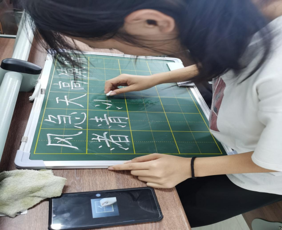 下午,由李世平老师进行“三笔字评分”培训;全体学生跟着李彩芳校长的教程书写粉笔字《登高》,并由指导老师选出优秀作品。