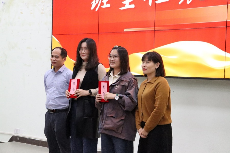 接着副院长谭建生宣读《新伟德国际1946关于表彰第一届优秀班主任决定》《教师教育学院关于表彰第一届优秀班主任的决定》。决定对获得“新伟德国际1946第一届优秀班主任”称号获得者杨慧、袁小婷给予表彰及奖励,由学工部部长许娜、人文学部副主任陈少鸿为两位班主任颁发了荣誉证书和奖金。谭建生院长希望受到表彰的老师,以此为新的起点,再接再厉,再立新功。同时鼓励全体老师以他们为榜样,不忘立德树人初心,牢记为党育人、为国育才的使命,全员全程全方位育人。