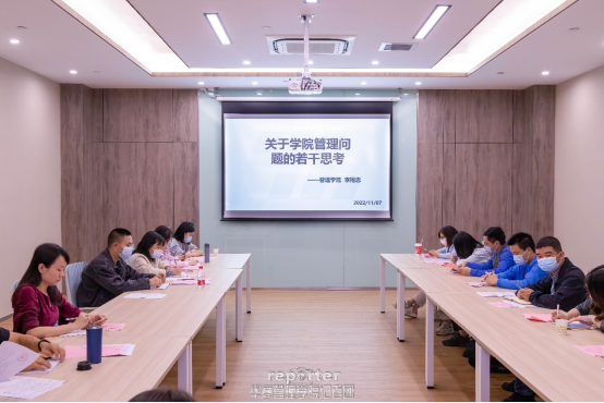 在管理学院机构调整和人事安排完成之后,11月8日下午,学院于教师发展中心互动室5举行管理干部培训会议,除疫情原因受限者外所有管理团队参会。