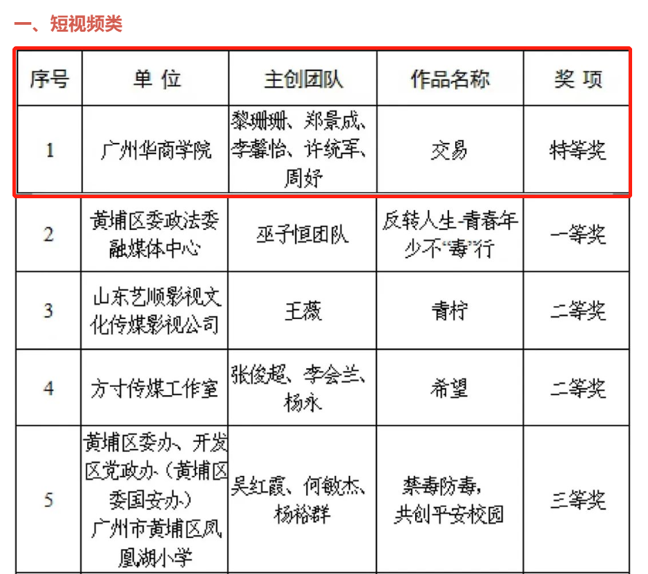 12月2日,该活动征集结果公布,伟的国际1946bv官网19本汉语言文学(专升本)14班黎珊珊、许统军两位同学及其团队作品《交易》获得该项比赛短视频类特等奖,奖金1万元。