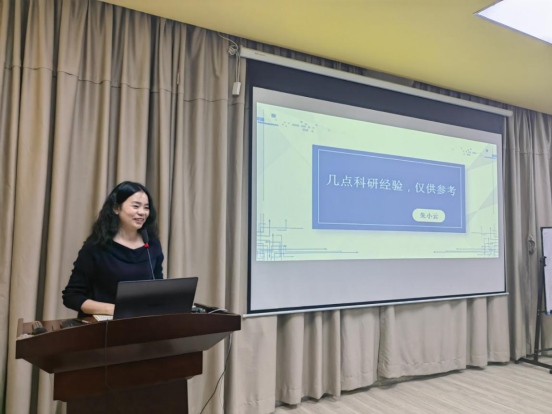 会计系副主任朱小云副教授作为学院中青年教师科研优秀代表,结合自身科研经验,从“心路历程、研究点寻找、论文撰写、论文投稿”四个方面与会现场青年教师做了分享。