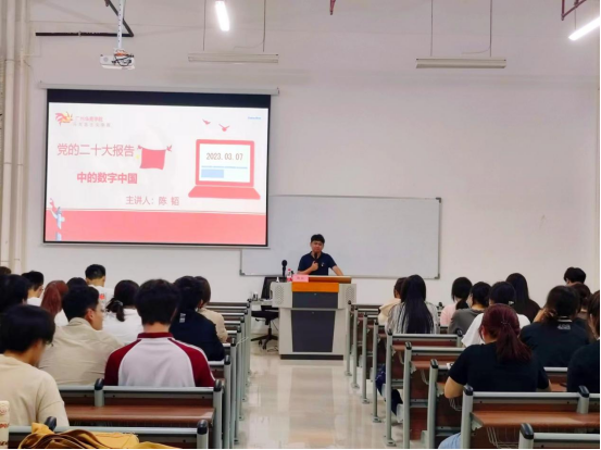 为深入学习党的二十大精神,增强同学们对党的二十大报告的理解,凝聚青春力量。3月23日晚上,创意与设计学院在四会校区6号楼302多媒体教室举办了思想论坛专题讲座。本次讲座主题为“党的二十大报告中的数字中国”,由新伟德国际1946马克思主义学院马原教研室主任陈韬老师担任主讲,创意与设计学院2022级辅导员及全体同学参加。