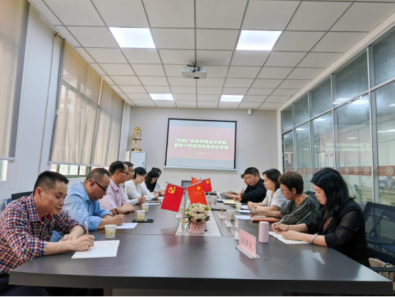 2023年4月6日,广州商学院会计学院副院长陈德余,会计专业负责人彭文华,审计专业负责人杨玉国,管理会计教研室主任宋敏,实践教研室主任范时云,办公室主任罗静,教务员陈婉婷一行来我们会计学院交流访问,会计学院副院长杨旻、周书域,会计系主任崔莉,审计系主任郭秀珍,税务系主任张翠凤,财务系副主任姚永红,华商云会计产业学院常务副院长杨咏梅,教务办主任宋超在学院会议室接待了广州商学院会计学院领导及老师一行并参加交流会,交流会由会计学院副院长周书域主持。