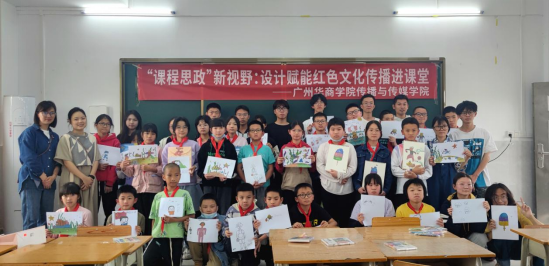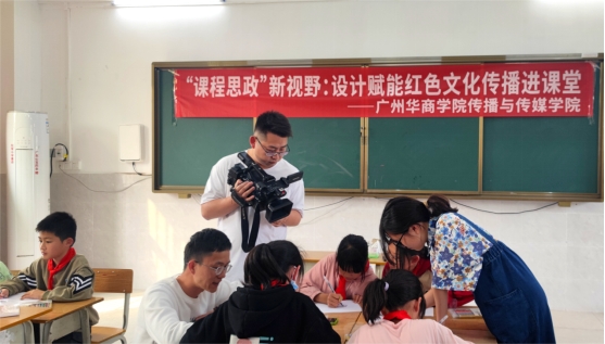 4月10日,新伟德国际1946传播与传媒学院视频传播系老师及学生代表,一行12人,来到北塘村红军小学将设计与美育带进小学课堂,赋能红色文化的传播。