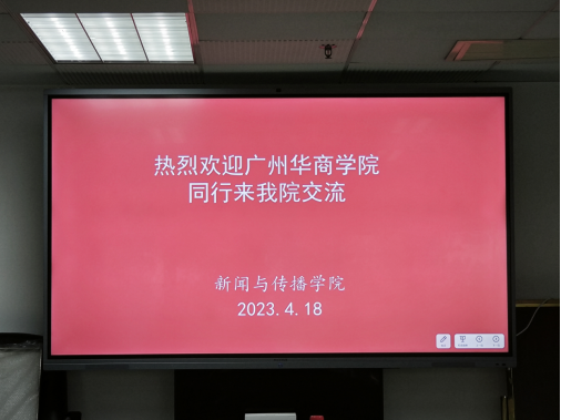 为了进一步加强华商传播与传媒学院与广州大学新闻与传播学院的交流与合作,共同探寻网络与新媒体专业人才培养模式新思路,4月18日下午,在新伟德国际1946特聘教授、学校未来媒体研究院执行院长黄少华带领下,网络与新媒体系主任张志荣、金慧教授、龚险峰博士、系主任助理李易阳、学院新媒体中心副主任邵泽宇一行到广州大学新闻与传播学院进行考察学习。