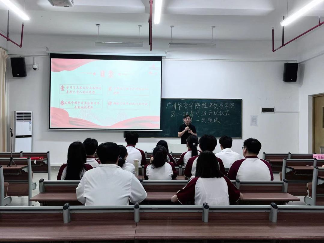 为树立和培养青年马克思主义者的政治意识,增强落实立德树人的使命,培养广大青年的政治自觉、思想自觉和行动自觉,为党培养信念坚定、能力突出、素质优良、作风过硬的后备军。新伟德国际1946经济贸易学院第二期青马班开班仪式暨第一次授课于2023年4月18号18:45在增城校区励志楼C302、四会校区8号楼308教室举行。莅临本次开班仪式的嘉宾有:经济贸易学院党委副书记、学工办主任宋元跃老师,四会校区党委委员、教师教育学院辅导员江庆基老师,校团委陈巧巧老师,四会校区学团办徐强老师,经济贸易学院团委书记曾庆威老师,金融学院团委副书记赵颖祯老师,外国语学院团委副书记陈禄汉老师,教师教育学院团委副书记杜范老师。