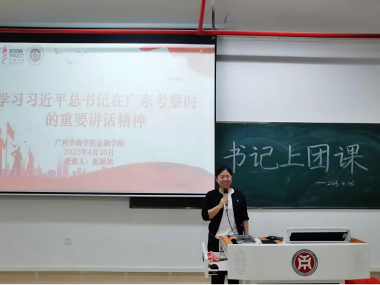 为贯彻党中央部署,扎实开展好主题教育,2023年4月金融学院团委在增城校区励志楼C104和四会校区8号楼402组织召开“学习贯彻习近平总书记视察广东重要讲话重要指示精神”主题团课。金融学院团委张文杰书记和赵颖祯副书记授课,带领金融学院团委成员及各团支部学生骨干共同深入学习,将理论学习传达贯彻落实到每一位青年团员。